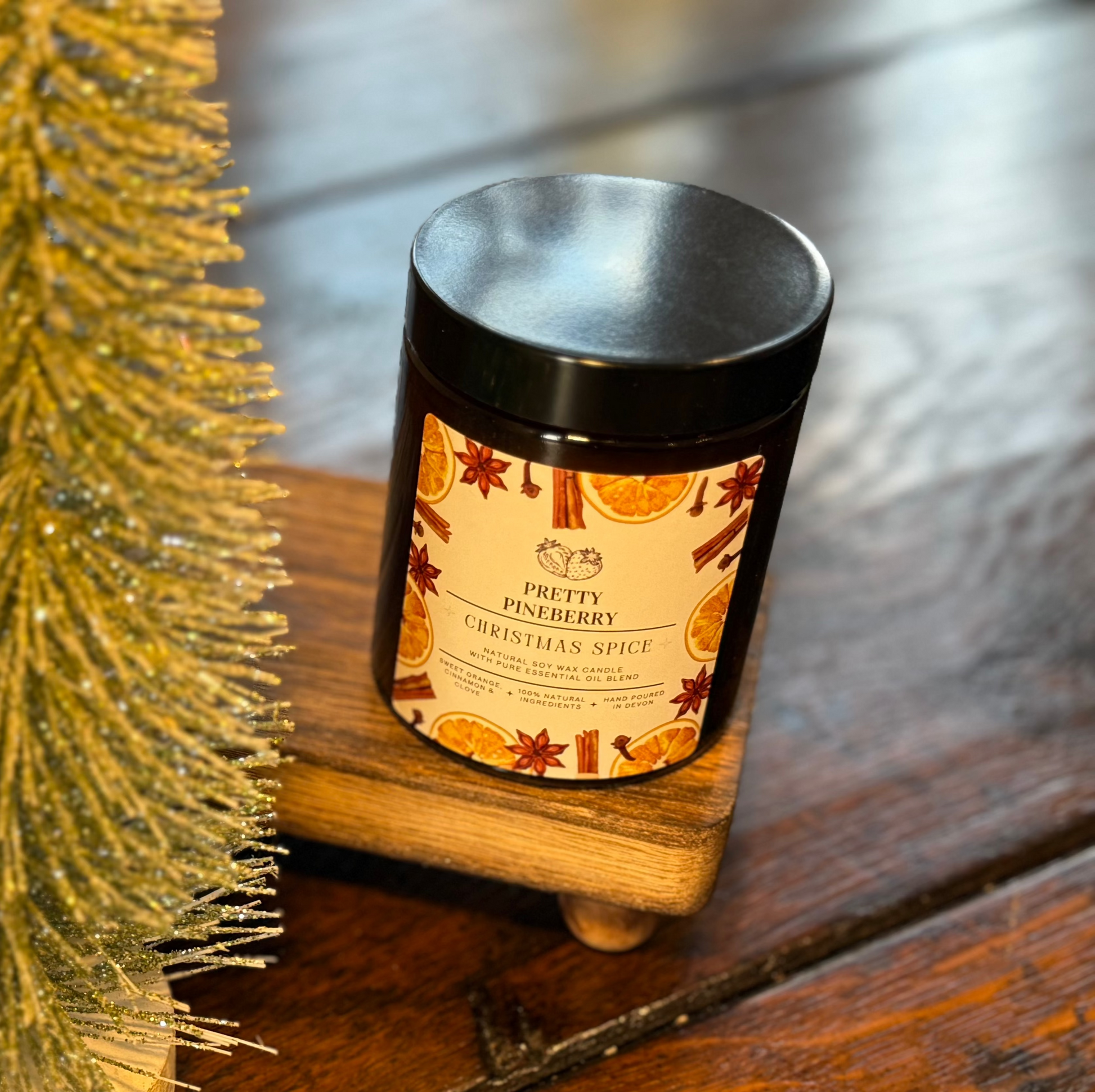 Step into the festive season with Christmas Spice, a hand-poured amber glass candle crafted in Devon.